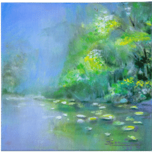 This painting captures a moment of quiet edge of vastness. There is a sense of open presence felt by simply being.